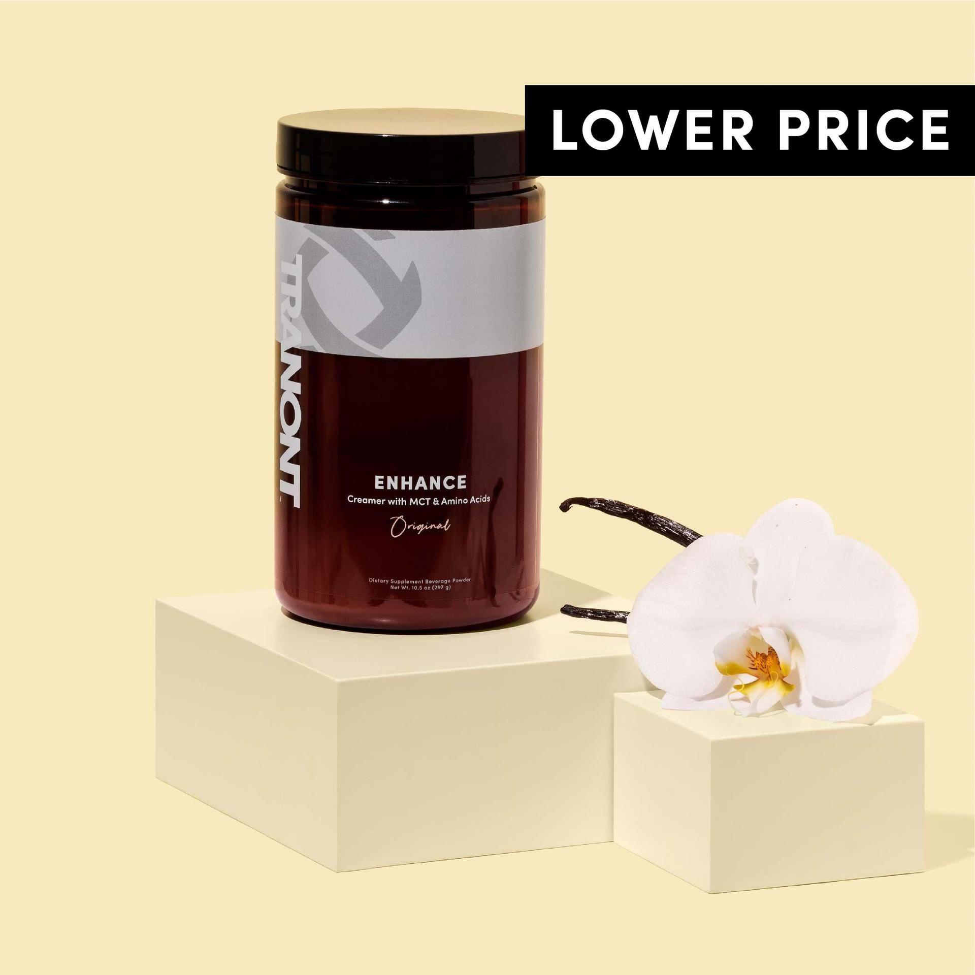 Elevate your daily routine with Enhance Creamer, a remarkable blend of MCT oil, amino acids, and natural mood enhancers. This versatile creamer doesn't just enhance the flavor of your drinks; it transforms your sipping experience into a moment of rejuvenation and productivity. Loaded with medium-chain triglycerides (MCTs), this keto-friendly creamer promotes weight management by curbing cravings and supporting a feeling of fullness.