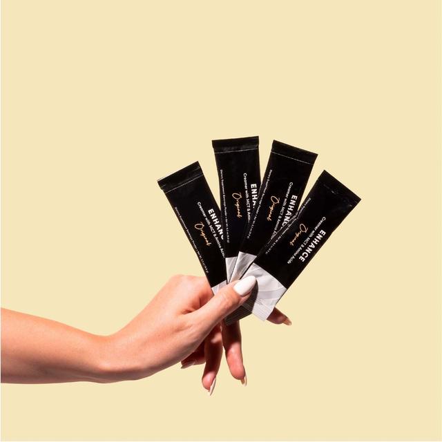 Enhance is the perfect addition to all your favorite beverages. It contains vitamin-rich ghee powder and natural sweeteners that add a rich, smooth texture and taste to your drinks without ruining your diet. With healthy MCTs (medium-chain triglycerides), amino acids, and grass-fed ghee added to the mix, it also delivers more feel-good power to your day.